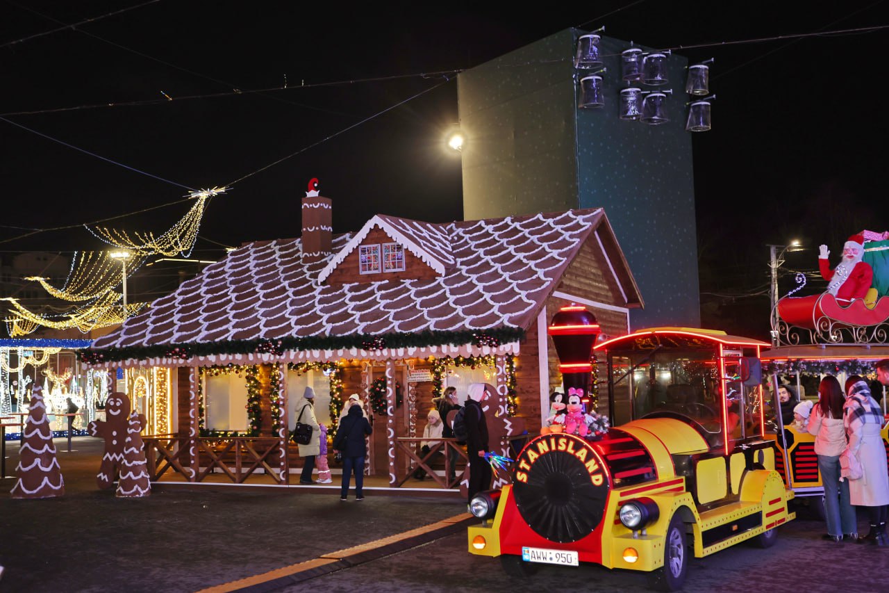 Aprinderea felinarelor & luminițelor de către copii și Moș Crăciuni